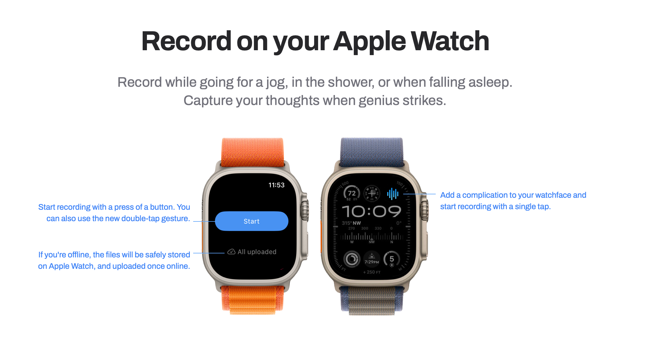 Watch OS app. Record on your Apple Watch, inspiration of an app in photo.